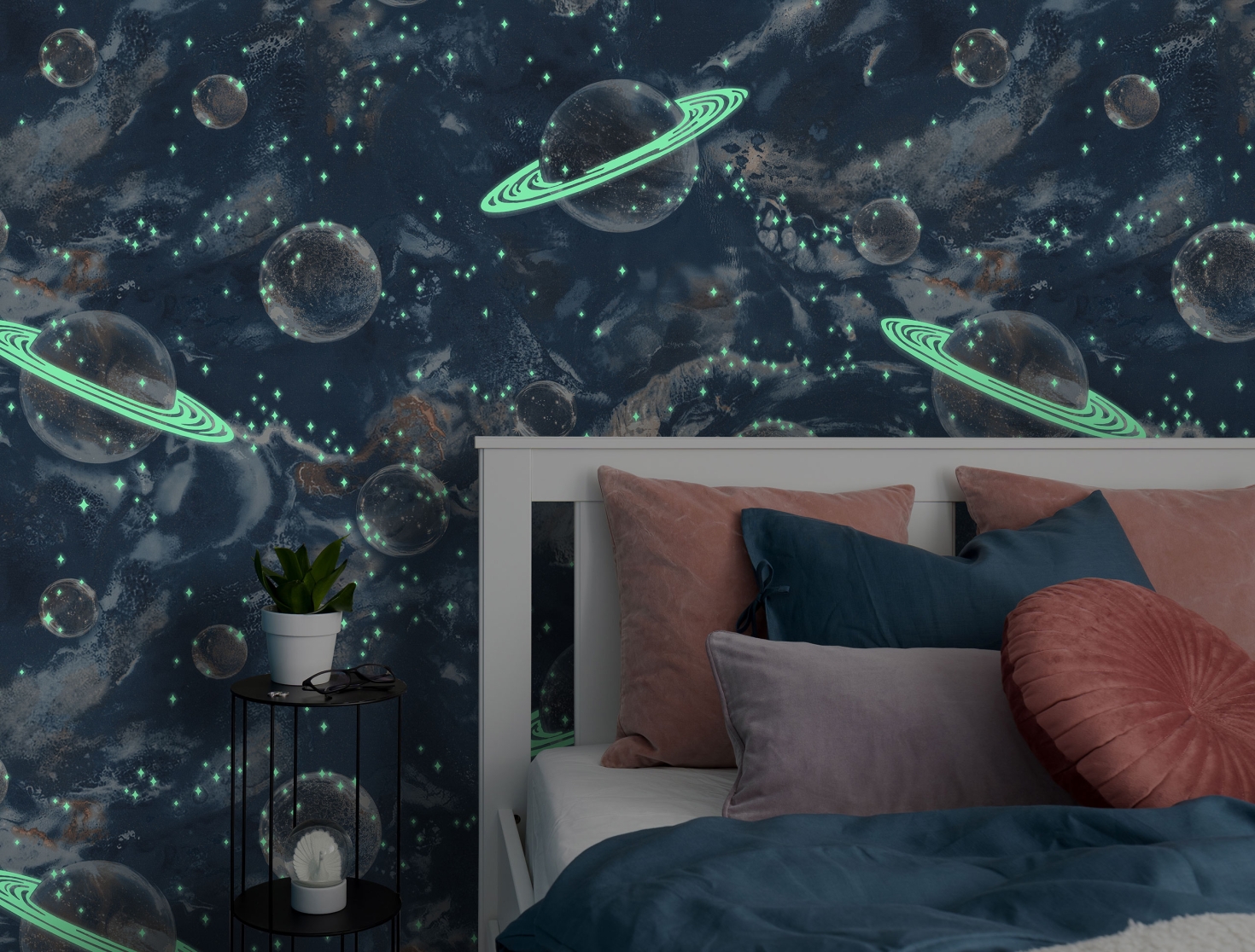 Благодаря специальному люминофорному покрытию, обои, словно губка, впитывают солнечные лучи в течение дня, а с наступлением темноты, они начинают отдавать накопленную энергию, и проявлять на стенах волшебные завораживающие ярко зеленоватые россыпи звезд и планет. Похожие товары |